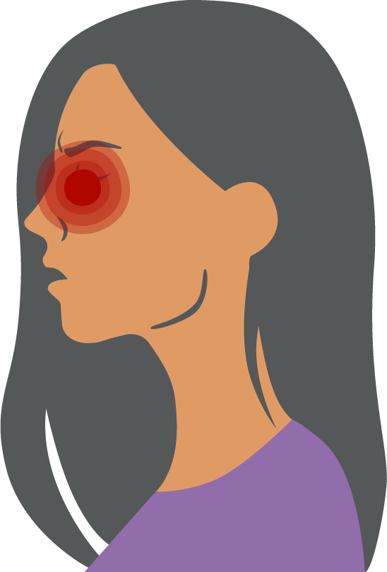 - Cluster headache — Occurring in a series over a period, symptoms often described as a sharp pain behind one eye and a burning sensation. Headache type is 3 times more common in men.