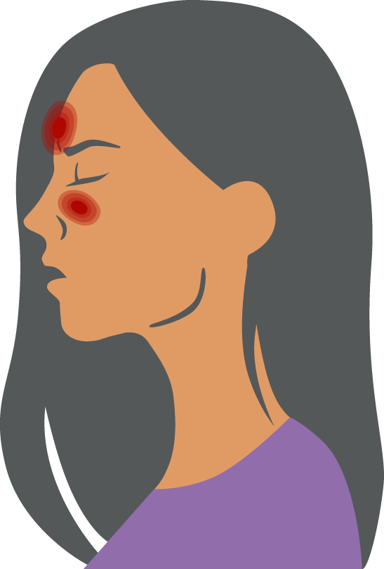 - Sinus headache — Pain focused in the sinus area and front of the head. Often described as a sensation of pressure, typically as result of congestion in the sinus cavity.